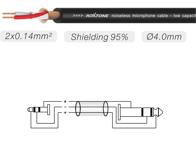 1 x moulded 3.5mm stereo plug - 1 x moulded 6.3mm stereo plug