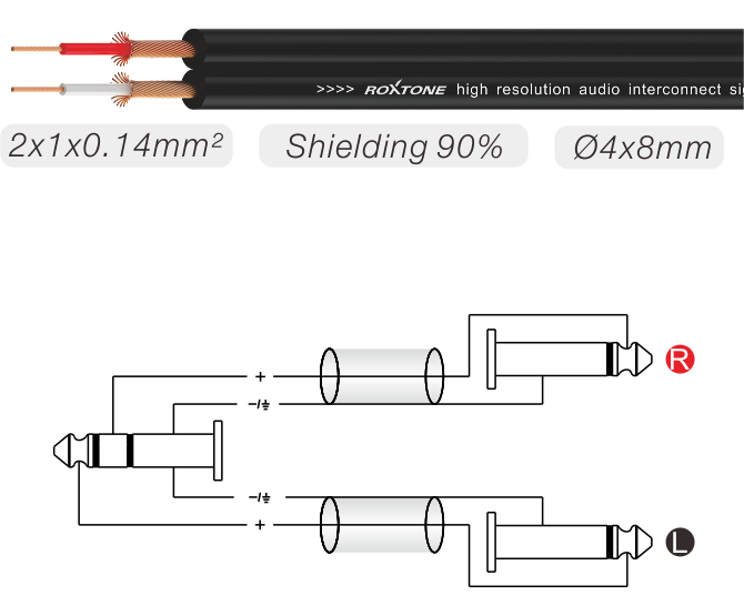 1 x moulded 6.3mm stereo plug - 2 x moulded 6.3mm mono plug Cable: AC010