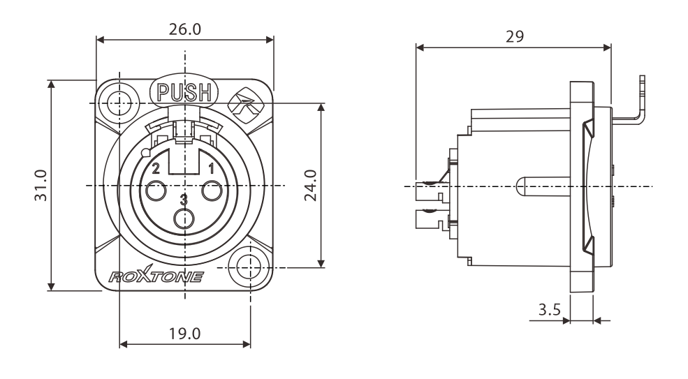 3 pole XLR female socket, Black electrophoretic paint shell, Gold plated contacts