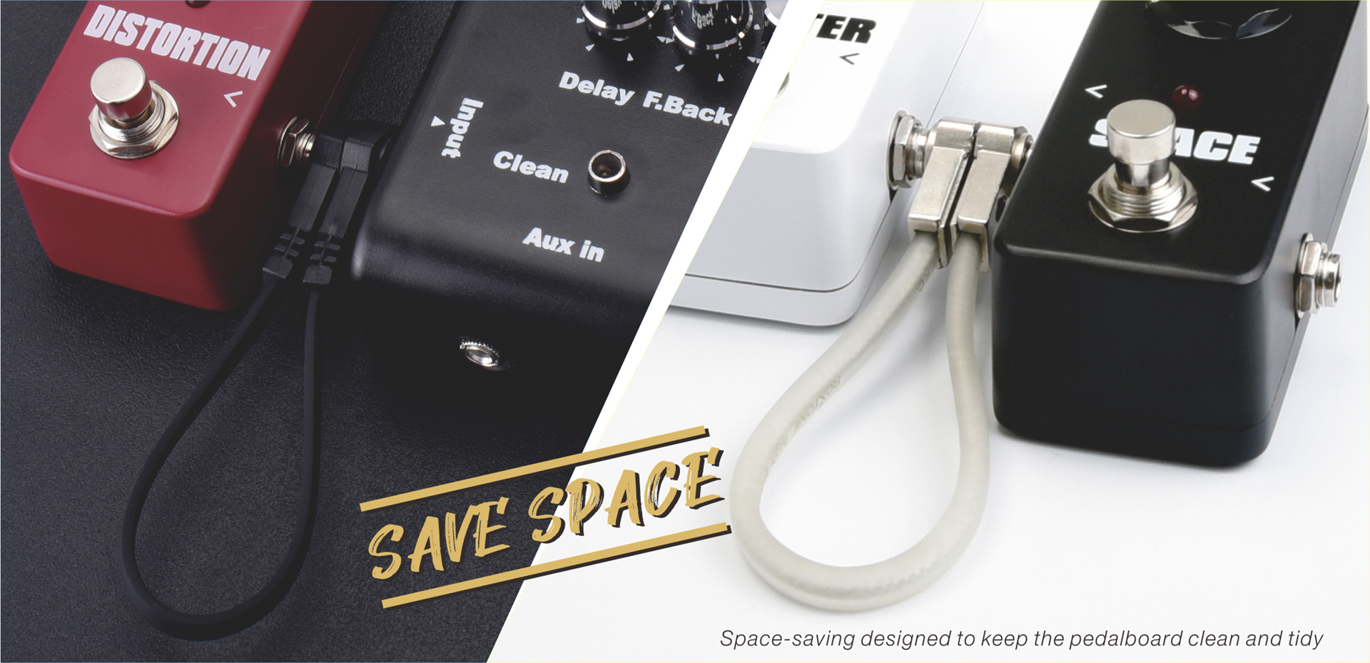 • Extreme flat 6.0mm thinness and compact angled 6.3mm mono plugs with gold plated contacts