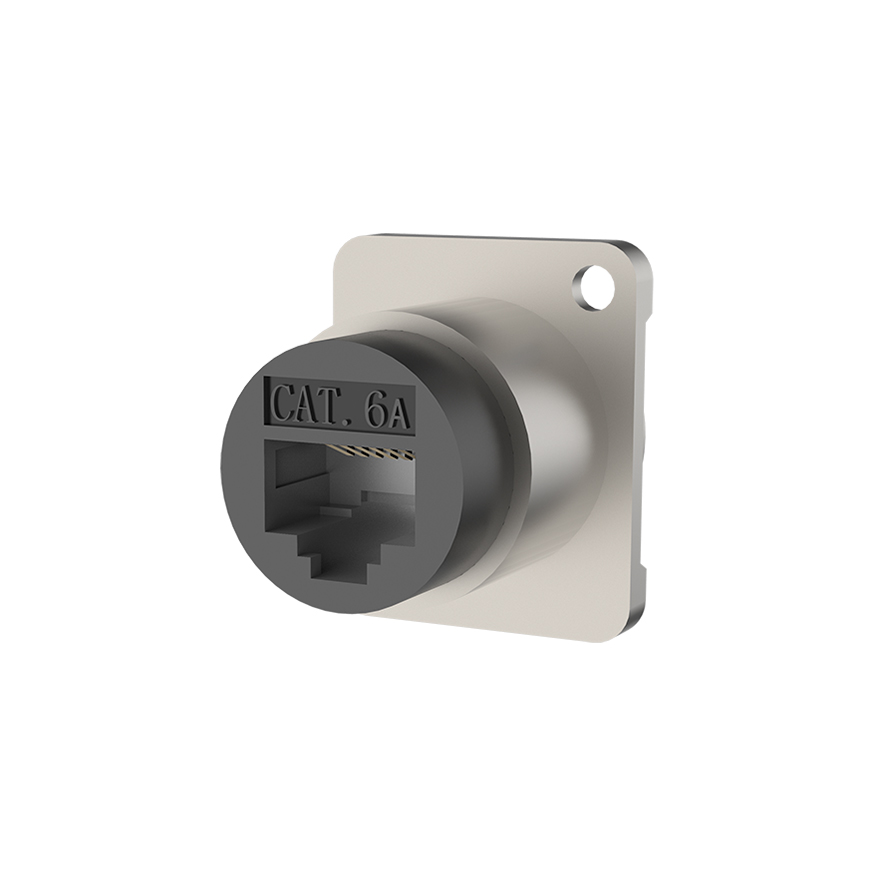 | RAE8FD-C6A | Feed through chassis RJ45 (CAT6A) adapter, Nickel plated housing |