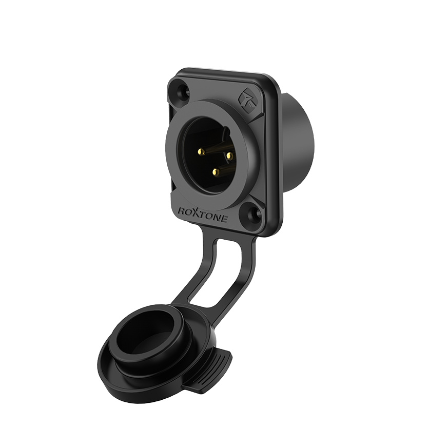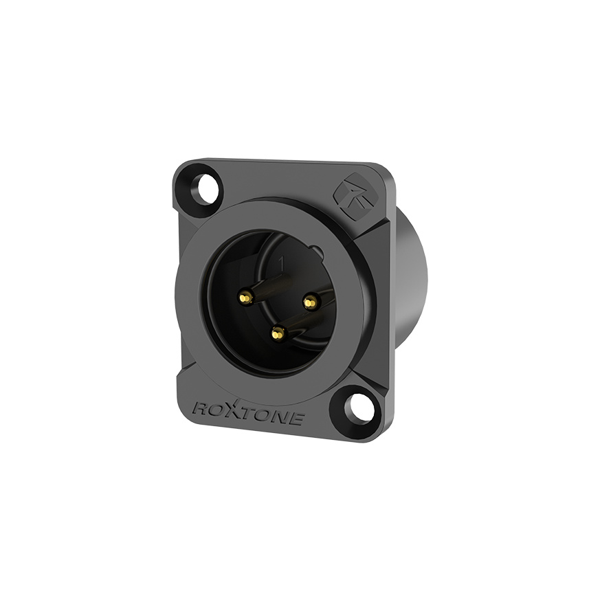 RX3MDWP-BG 3 pole XLR male socket, Black housing, Gold plated contacts