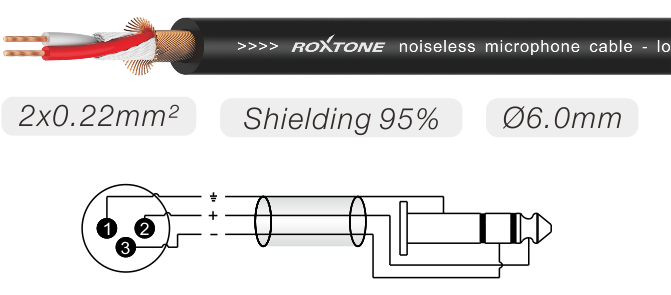 XLR 3-pin male < - > 6.3mm stereo plug