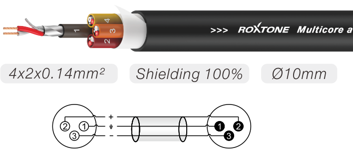 XLR 3-pin male - XLR 3-pin female Connectors: RX3M-NT – RX3F-NT Cable: TCE4C