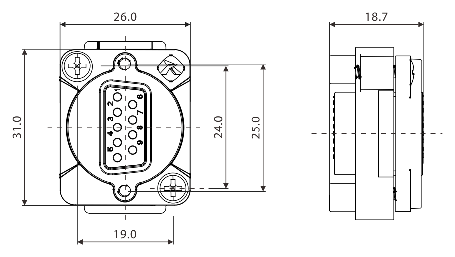 Feed through chassis D-SUB(9P) adapter, Black housing