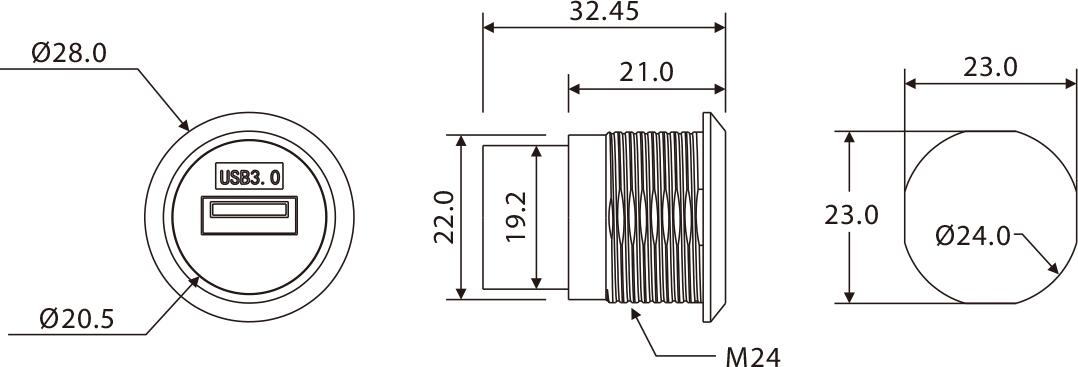 Feed through chassis USB3.0 (A-A) adapter, Nickel plated housing