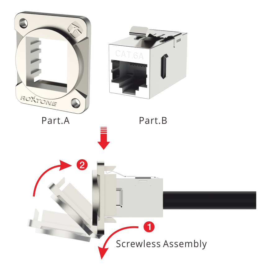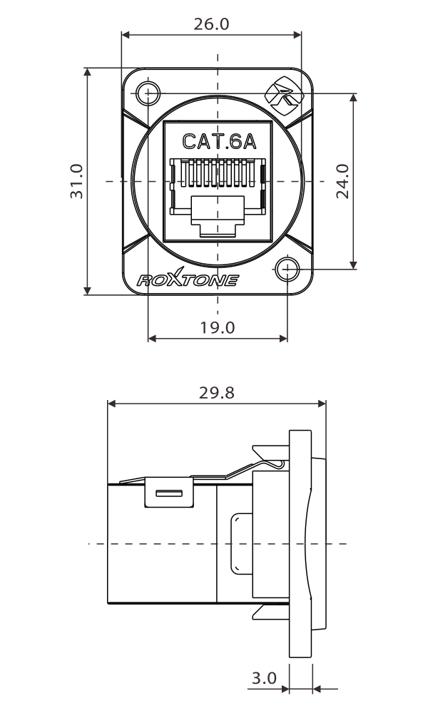 • D-size feed through chassis RJ45 adapter designed for CAT6a
