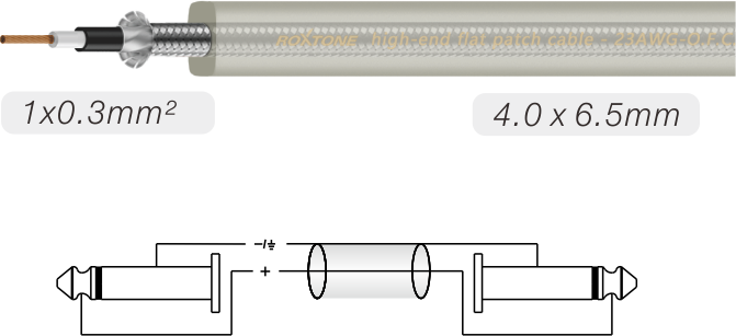 • PVC Jacket 6.5mmx4.0mm , large conductor with tin plated copper 1 x 0.3mm² / 23AWG