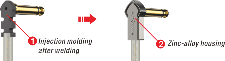 • Extreme flat 6.0mm thinness and compact angled 6.3mm mono plugs with gold plated contacts