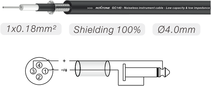 Mini XLR 4-pin female < - > PUREPLUG Connectors: RMX4F-B and PJ2X-GG-PURE Cable: GC140