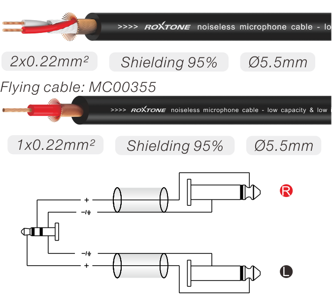 1 x 3.5mm stereo plug - 2 x 6.3mm mono plug