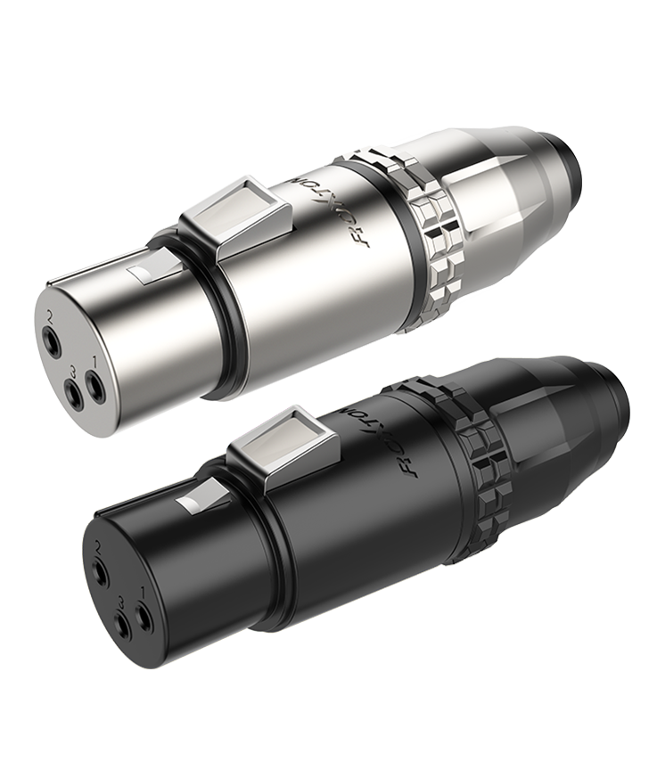 3 pole XLR female, Nickel plated housing, Gold plated contacts