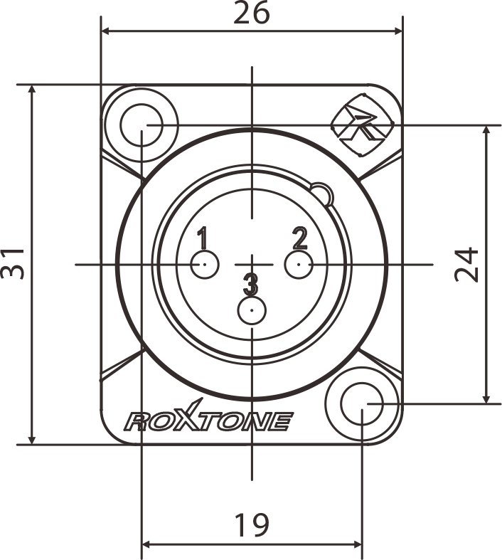 3 pole XLR male socket, Nickel plated housing, Gold plated contacts
